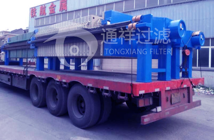 機架部分是機器的主體,用以支撐過濾機構,連接其它部件。它主要由止推板、壓緊板、油缸體和主梁等部件組成。機器工作時,油缸體內的活塞推動壓緊板,將位于壓緊板與止推板之間的濾板、隔膜板、濾布壓緊,以保證帶有壓力的料漿在濾室內進行加壓過濾。